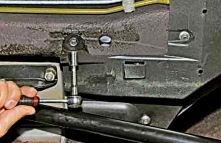 - В смотровой яме или на эстакаде открутите крепления защитного кожуха. Для этого используется ключ на 10. Достаньте кожух.